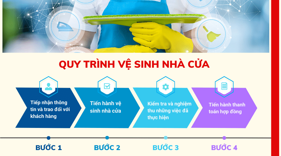 Trong quá trình thực hiện, đội ngũ nhân viên của chúng tôi đều tuân thủ theo đúng quy trình, sử dụng các dụng cụ, hóa phẩm đạt tiêu chuẩn an toàn. Tận dụng các công nghệ mới và kỹ thuật vệ sinh tiên tiến, chúng tôi cam kết mang lại không gian sống hay làm việc sạch sẽ, sáng bóng. Quy trình linh hoạt, hợp lý chính là chìa khóa giúp khách hàng cảm thấy hài lòng, tin tưởng và duy trì hợp tác dài lâu.